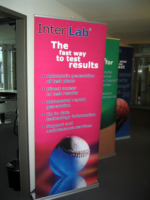 Diese 4 Messewände wurden für den GSM Congress 2004 in Cannes hergestellt. Jede