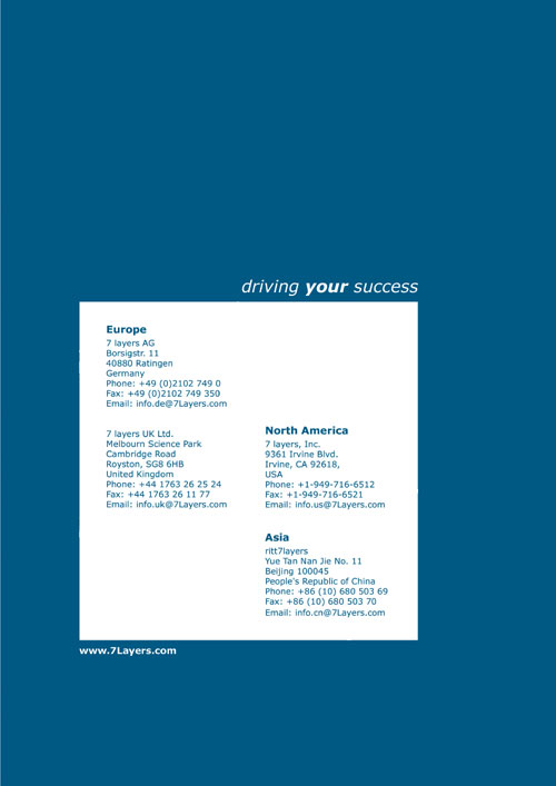 Erstellung neuer Flyer für 7 layers in Ratingen, Irvine, Cambridge und Peking.